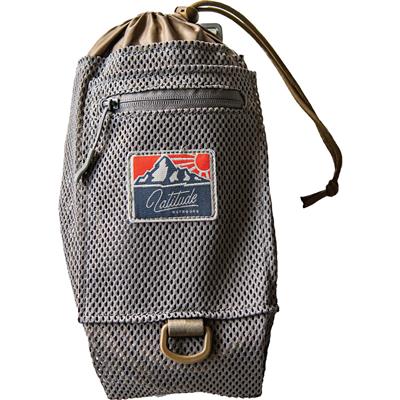 A dump pouch large enough to hold both a lineman belt and tether. Measures 13” tall and 7” wide. Has a zippered pocket to hold a phone, license, or other items. The mesh material is made with stronger, stiffer construction to hold shape. D-ring strong enough to hold a climbing stic